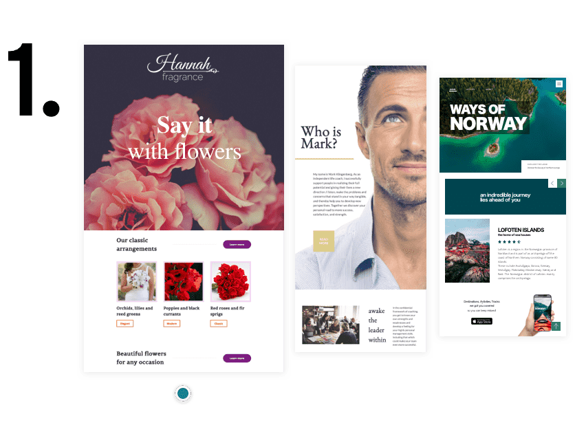 This allows you to keep an eye on how the end result looks when you design your web pages. All it takes is the click of a mouse to activate certain elements, and then move them into the desired position. Using a versatile editor allows you to easily write a text for your site – use it to adjust the font size and make other formatting adjustments such as underlining text. In addition to this, photos, videos and links can be easily integrated. Create your own website with one of our MyWebsite packages – all of which do not require knowledge of computer languages like HTML or CSS. All you need to build a website with us is an idea, some time, and some willingness to have fun! Successful results can be seen in just a short period of time.